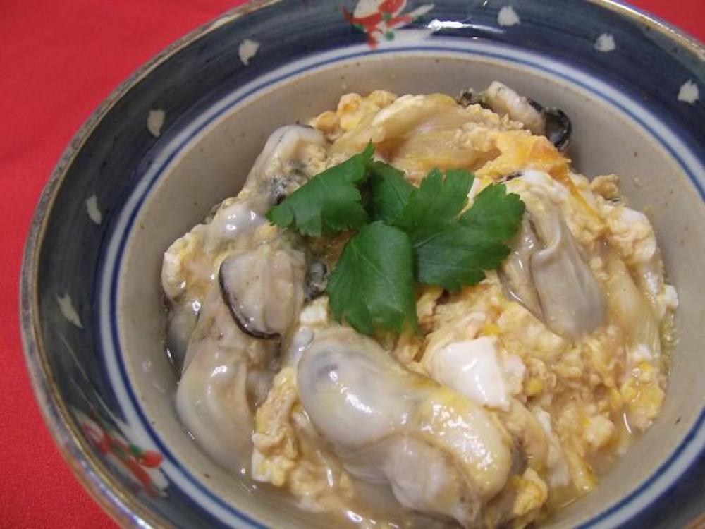 牡蠣を入れてブツブツいってきたら、溶き卵を入れて40秒→火を止めてフタして1分