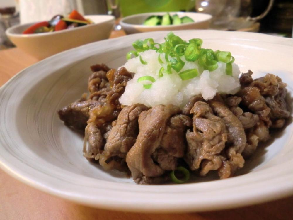 フライパンに油を熱し、1の牛肉を入れて焼き、汁も加えて、からめるように両面色よく焼きます。