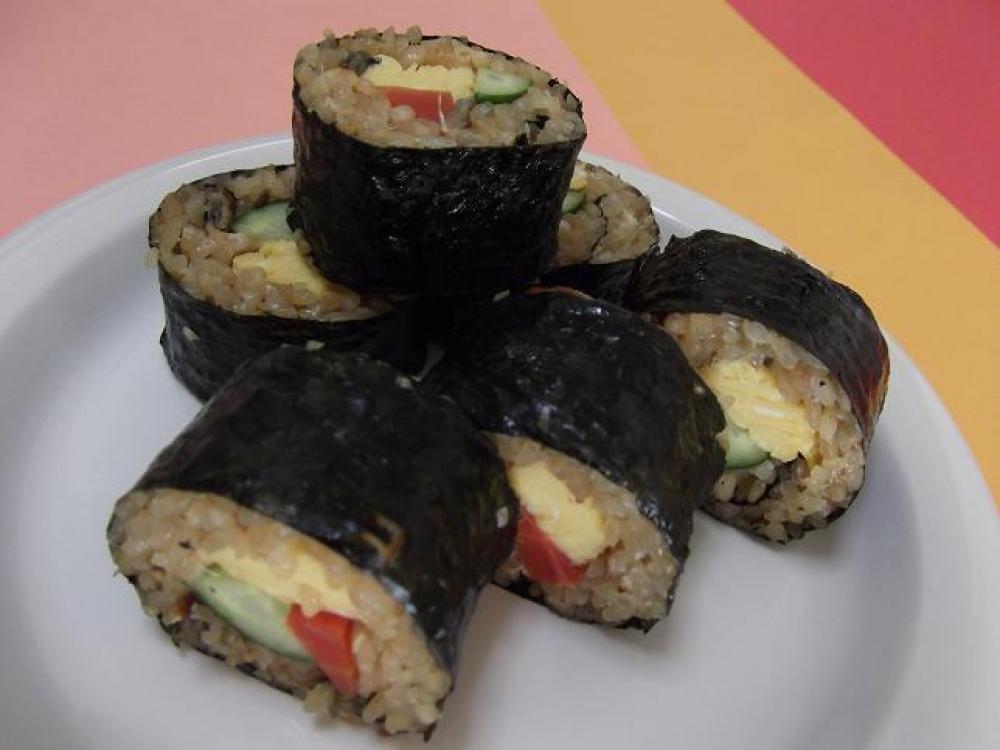 ![]() 卵液を混ぜて、焼いて、細長く切っておきます。マキスに、海苔→うなぎご飯→具、とのせて巻いたら出来上がり!