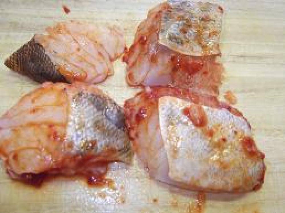 鱈に軽く塩をして5分くらいおいてから熱湯をかけて臭みを取ります。