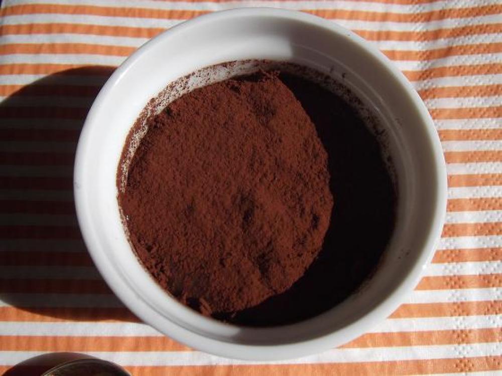 ![]() 上にココアパウダーをふるいます。