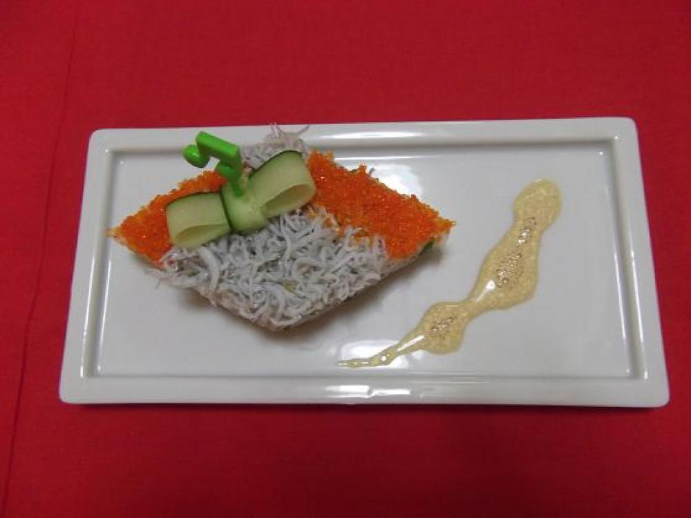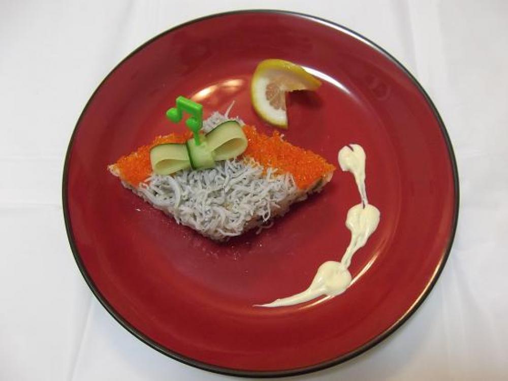 上を、しらす&とびっこ&5で飾り、型を外します。