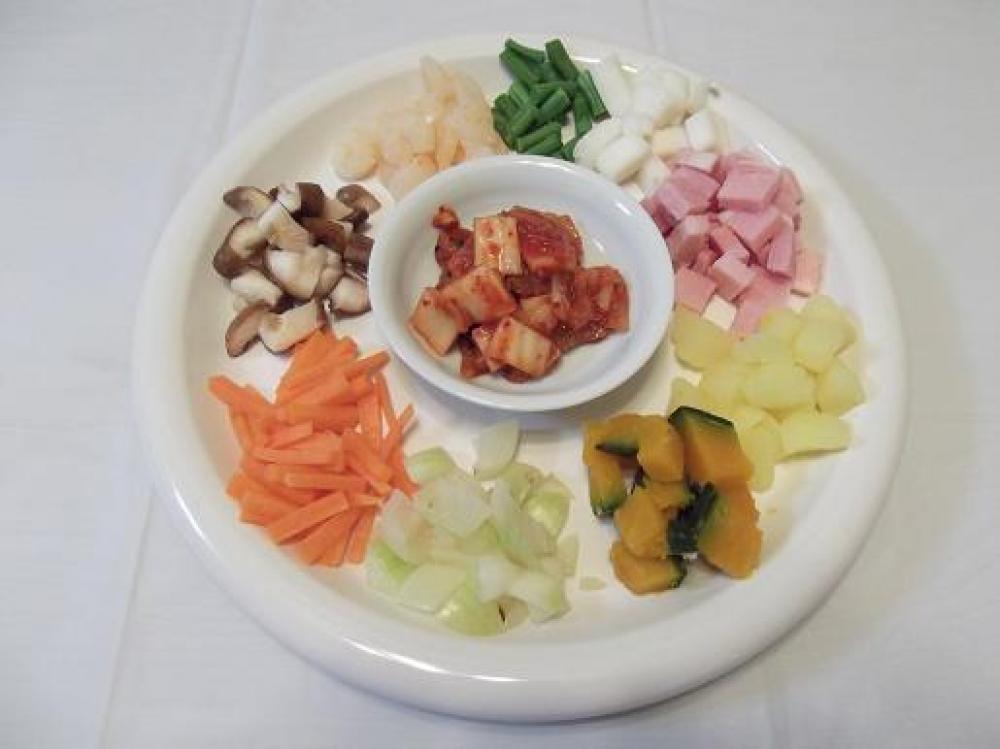 ![]() 具材を切って、チンしたり、茹でたりして火を通しておきます。
