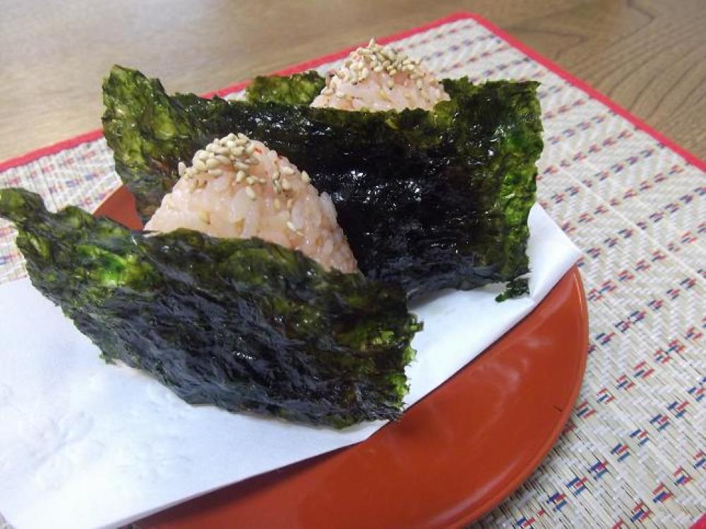 ![]() 周りに極少々塩して韓国海苔で巻きます。