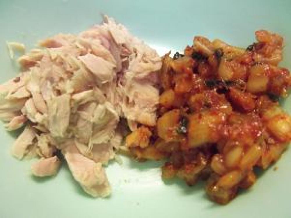 ![]() ご飯にキムチの汁&白ゴマを混ぜ、ツナとキムチも混ぜ、ツナキムチを具にしておにぎりを作ります。