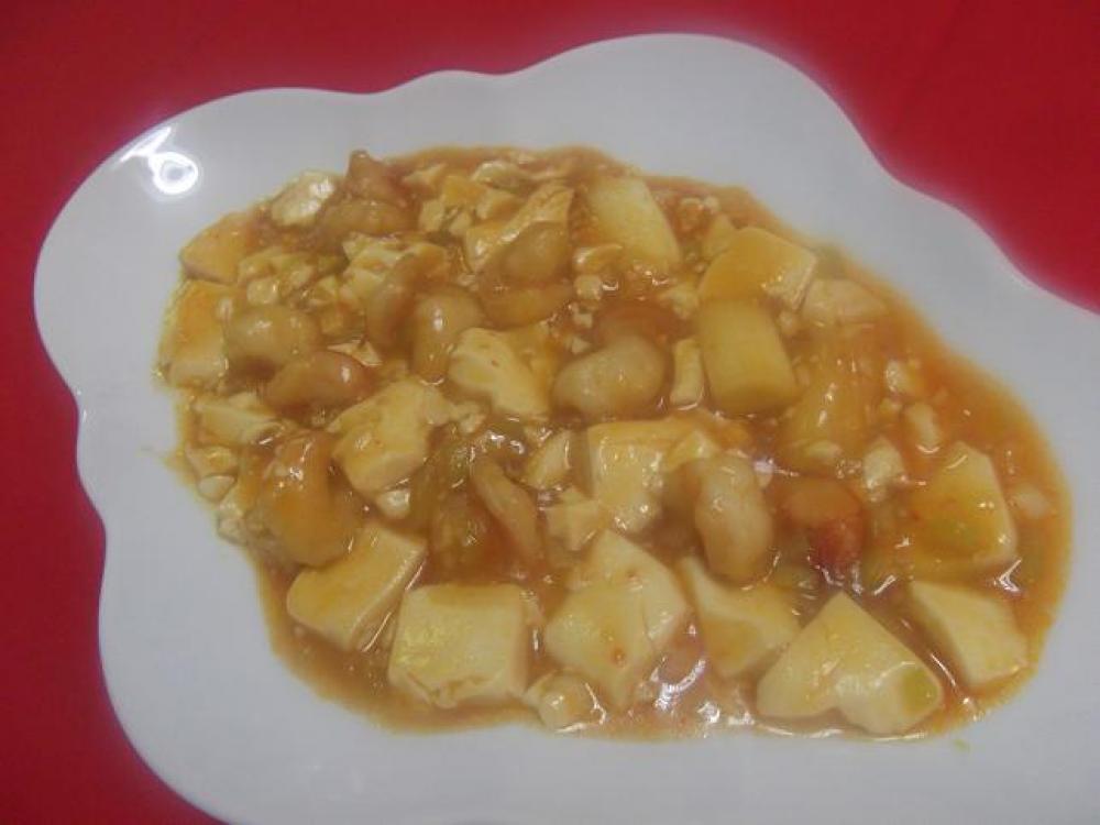 混ぜておいたAを3に入れて強火にかけ、沸騰しかけたら豆腐を入れます。