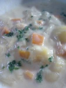 ![]() 野菜が煮えるのを待つ間、別の鍋に、バターを溶かし、小麦粉を炒めていきます。