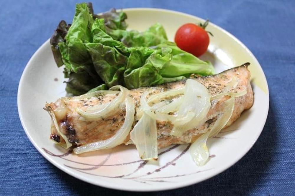 油をひかずに熱したテフロンのフライパンで、サクラマス・玉ねぎを軽く焼きます。