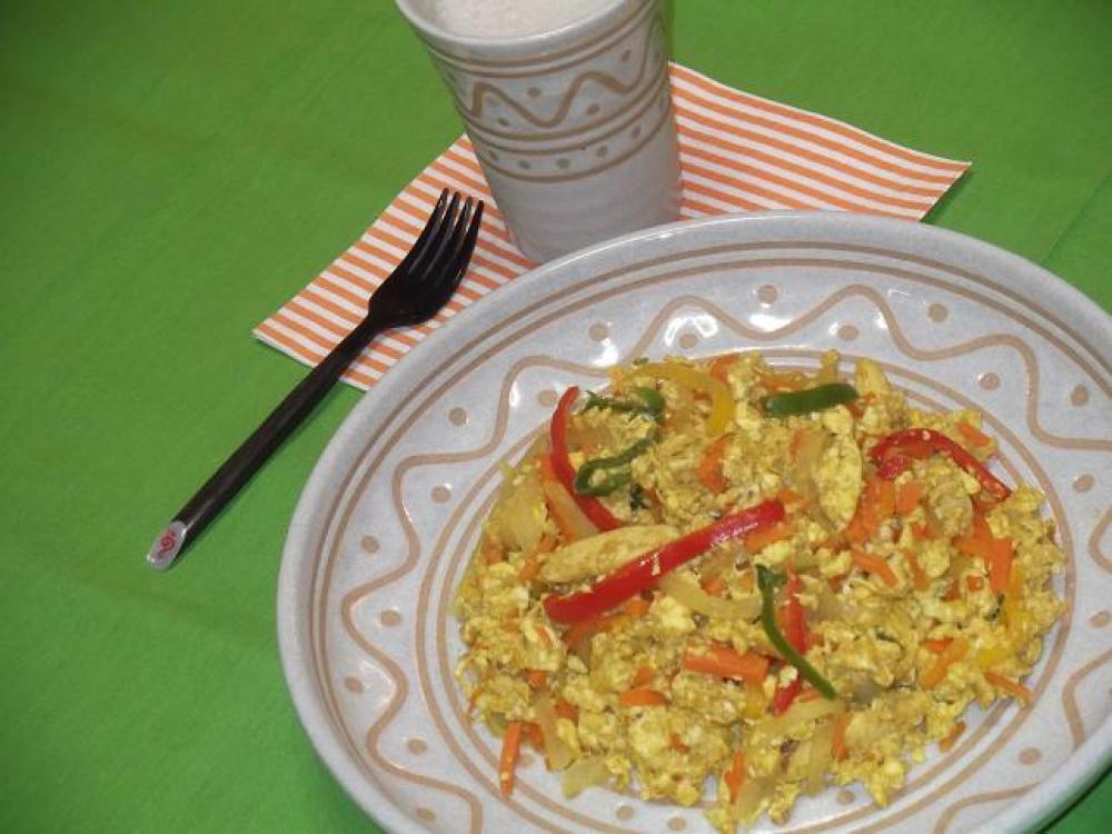 溶き卵を流し入れて、全体と混ざったら出来上がり!