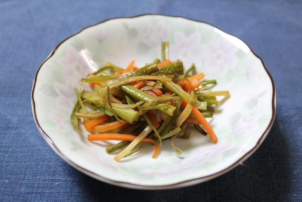 うどの皮は細切りにし、5分ほど水につけ、しっかりと水気を切ります。