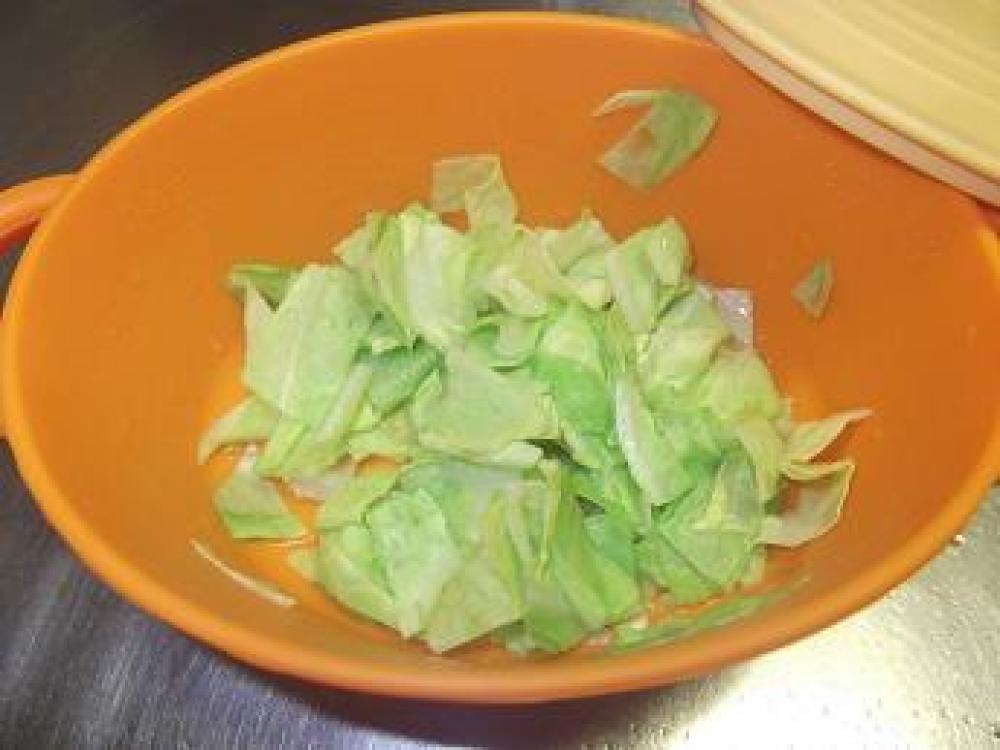 ![]() キャベツを粗みじんに切り塩コショウを少し振ってレンジで40秒チンします。