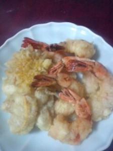 エビは背わたを取って、下味用調味料をからめておきます。カボチャはわたを取り、皮を部分的に剥いて、好みの厚さに切ります。