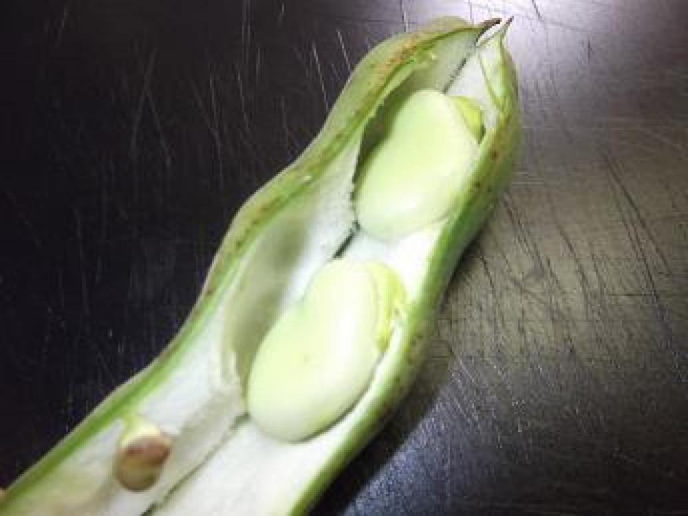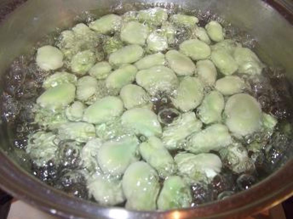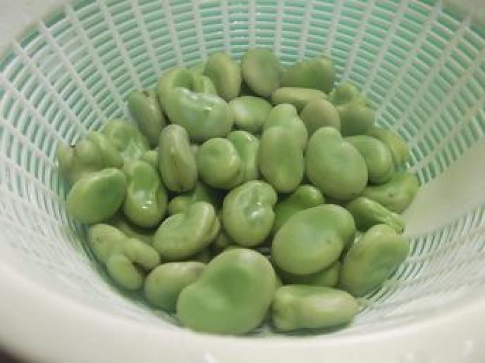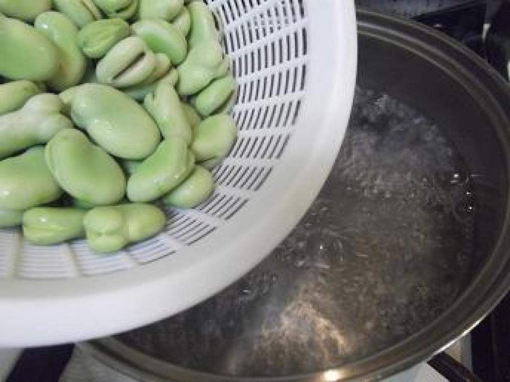 ![]() 「そら豆の茹で方」さやから出します。
