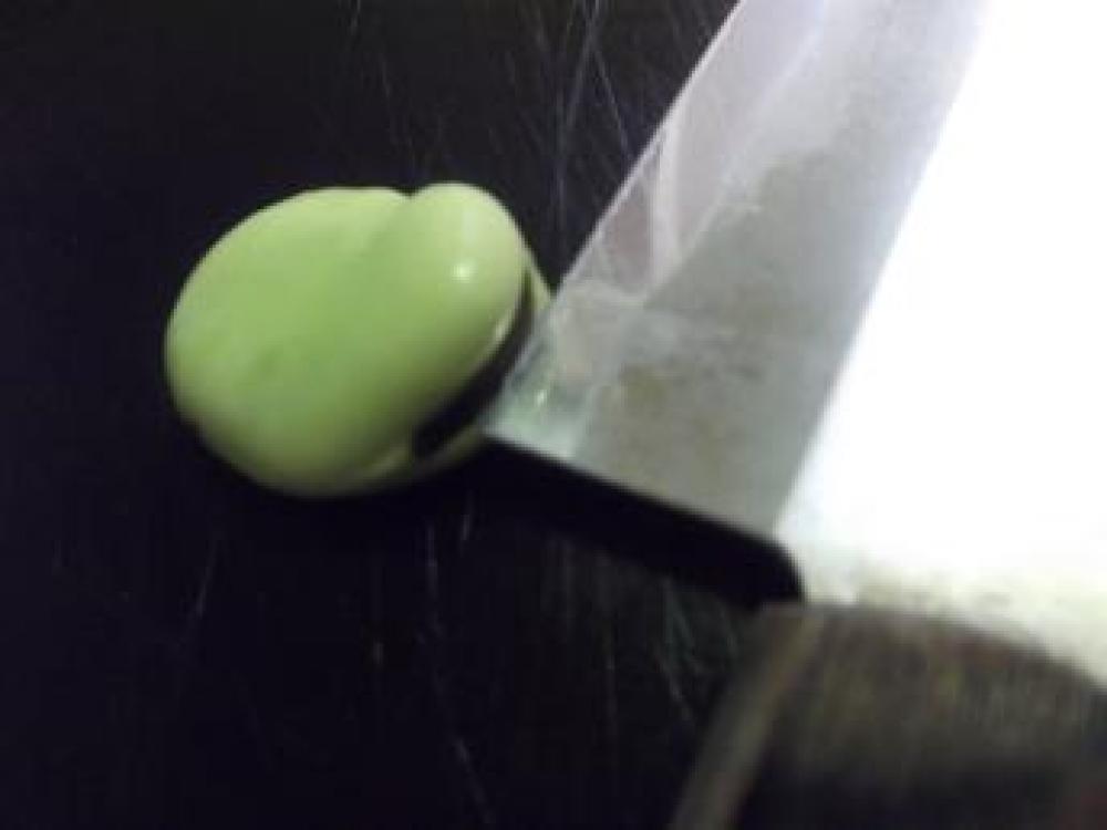 ![]() 横に包丁で切れ目を入れます。黒いとこがいいみたいです。結構深く!(シワシワ防止と簡単に皮から出せるダブル効果)