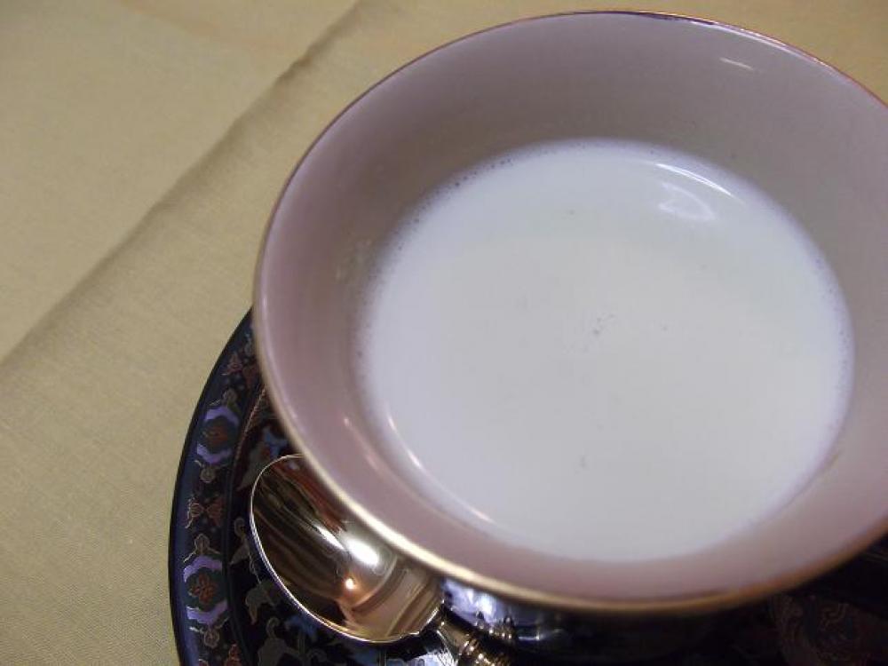 茹でたそら豆と牛乳を鍋に入れて弱火にかけます。