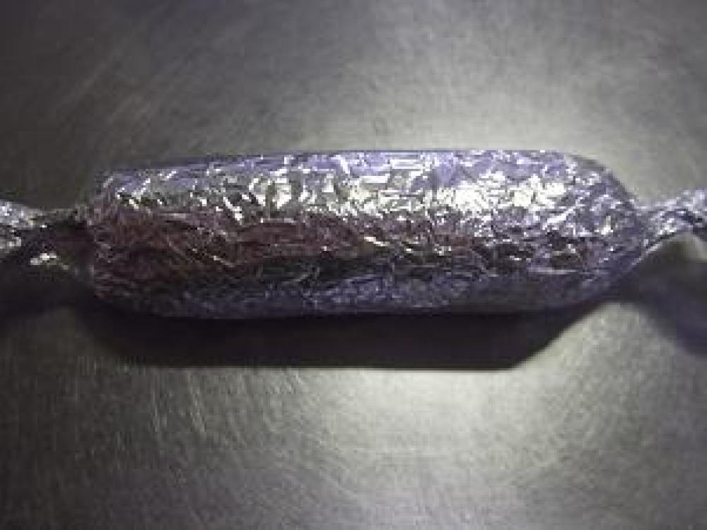 ![]() 焼きあがったらラップにくるんで丸い棒状に形を整えます。