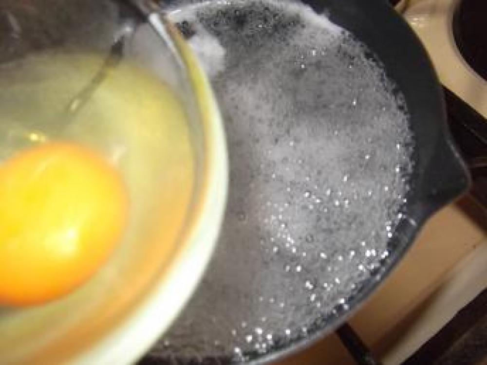 ![]() 鍋にBを入れ、沸騰したら一旦器に割った卵を流し入れ・・・ 白身を菜箸でまとめながらお好みの固さまで茹でます。