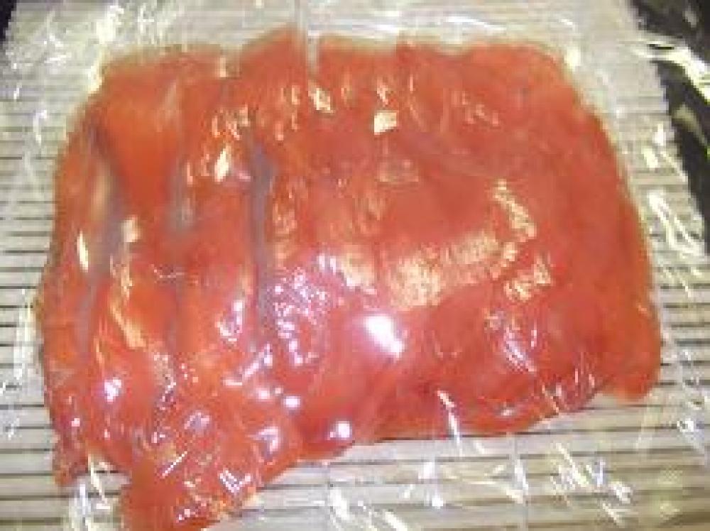 ![]() ご飯の上にサーモンを並べて、上にラップをのせて裏返します。