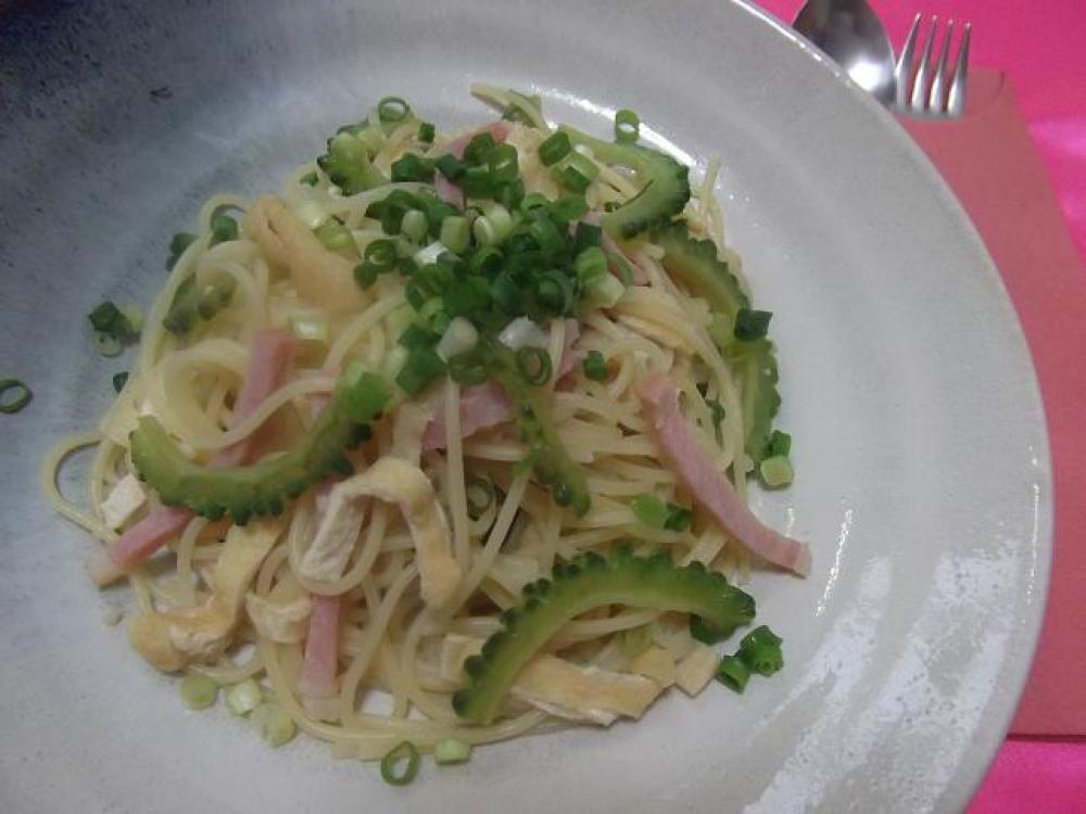 沸騰したらゴーヤと油揚げを入れて弱火で煮るようにします。