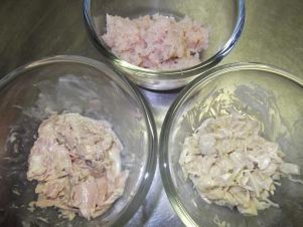 ![]() A&Cをそれぞれまぜておきます。(Bは混ぜずにのせるだけです)