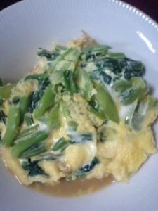 グツグツしてきたら、卵を落としいれ、表面が固まってきたら、火を止めて、蒸らします。