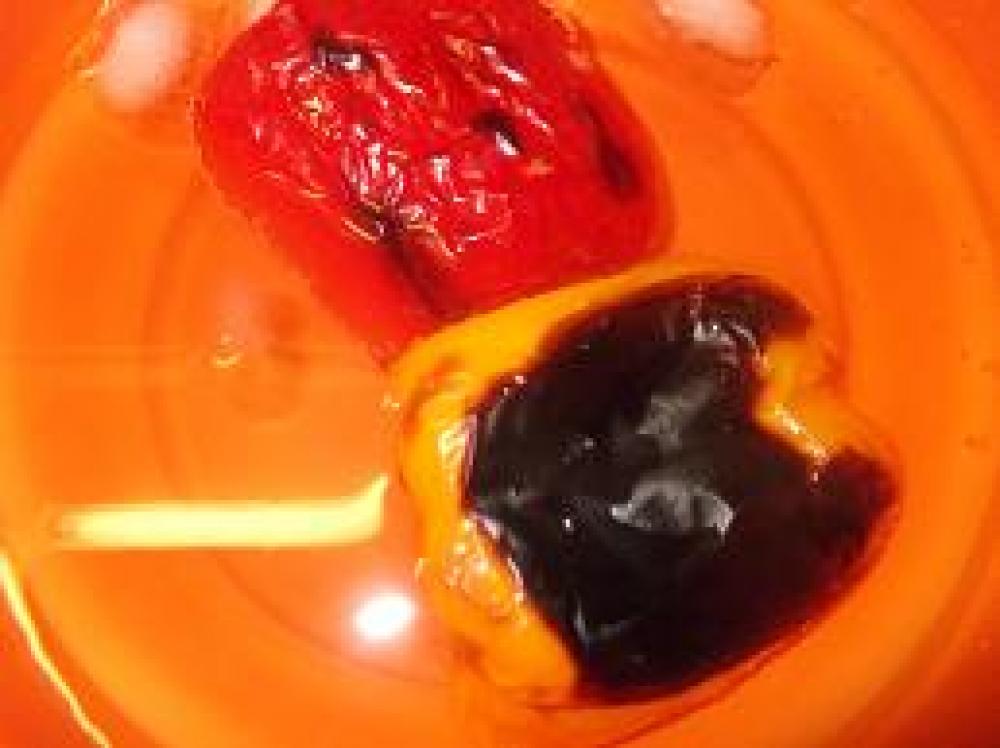 ![]() パプリカを半分に切りタネを取って切り口を下にアルミホイルに並べトースターで10分くらい焼いて焦がします。