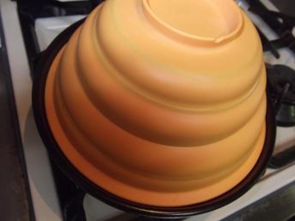 ![]() タジン鍋にバターを入れて、玉ねぎを炒めます。
