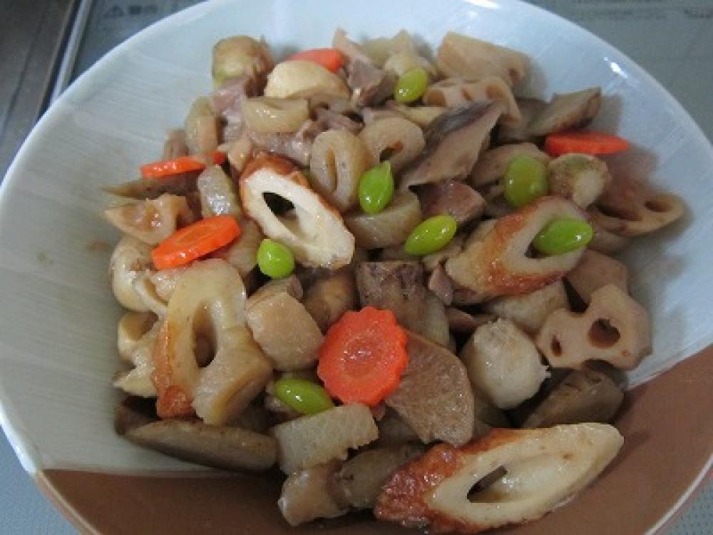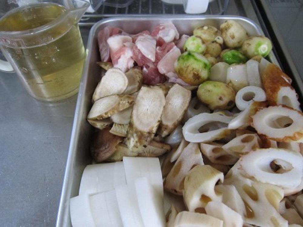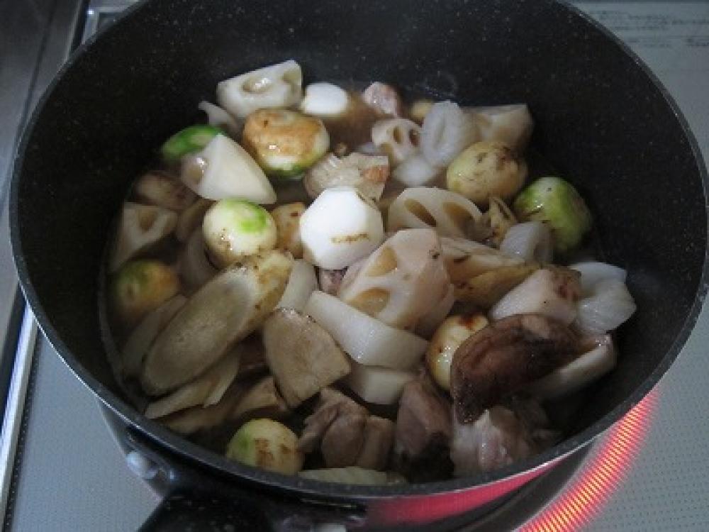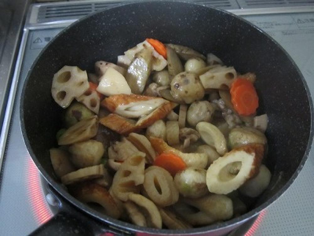 ![]() Dの戻し汁と 干ししいたけを入れ Eを入れて15分位 中火で煮込む Fを入れて5分