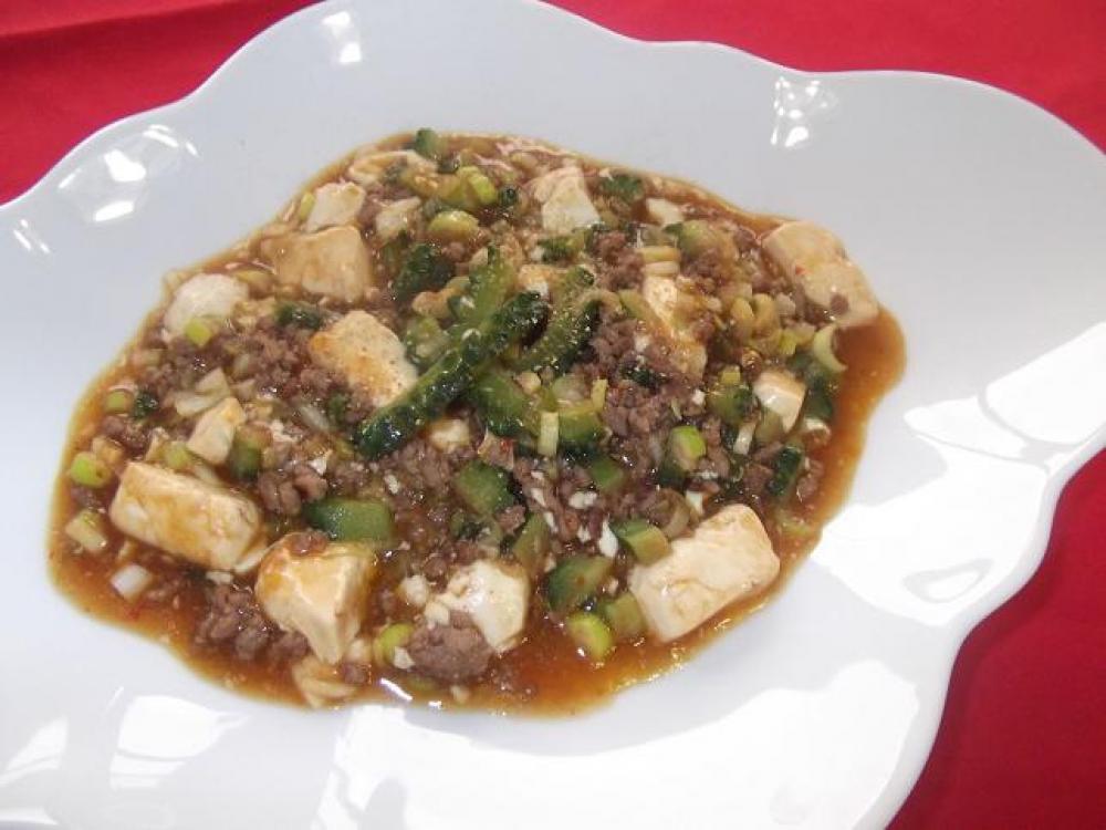 ゴーヤを縦半分に切り、タネとワタを丁寧に取り、粗みじん切りにして(飾る分はスライス)軽く塩揉みし10分置いて洗います。