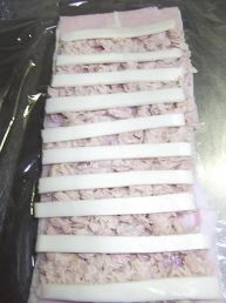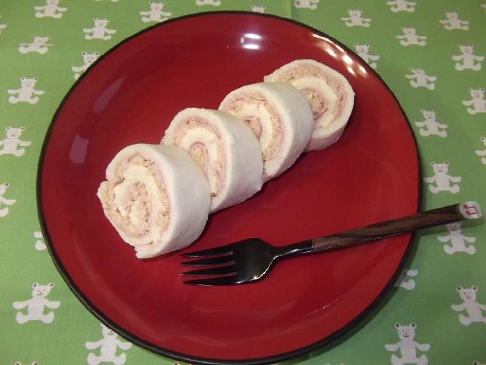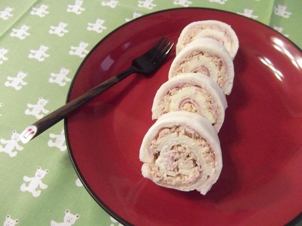 ツナ缶とBを混ぜて2の上に塗ります。(向こう側端は1cmのせません)