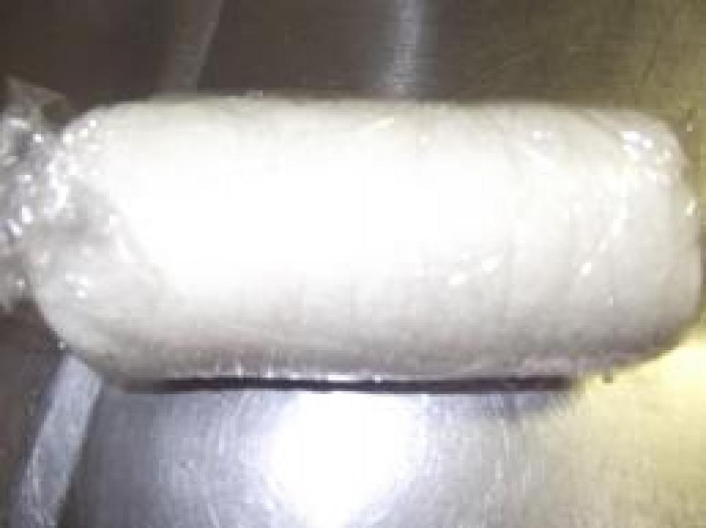 ![]() 端から巻いてラップで形をととのえます。