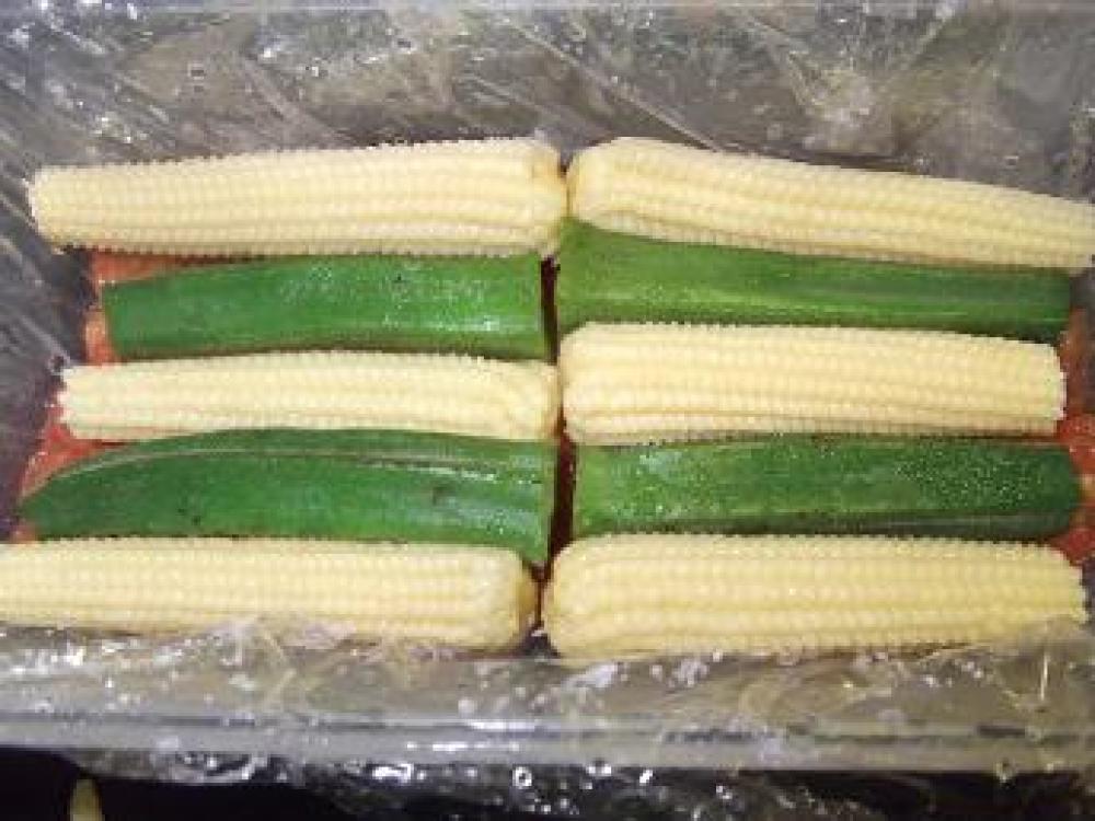 ヤングコーンは軽く塩して1分チンします。(水煮でもOK)