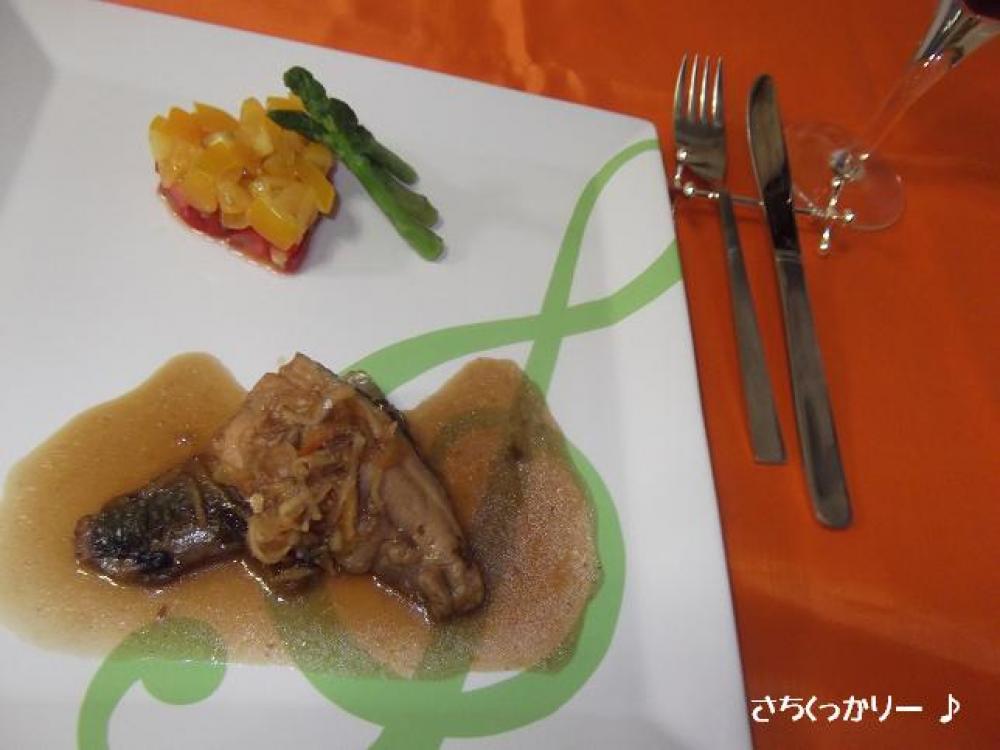 鍋にオリーブオイルを入れ、強火にかけて秋刀魚を皮目から入れて、両面サッと焼きます。