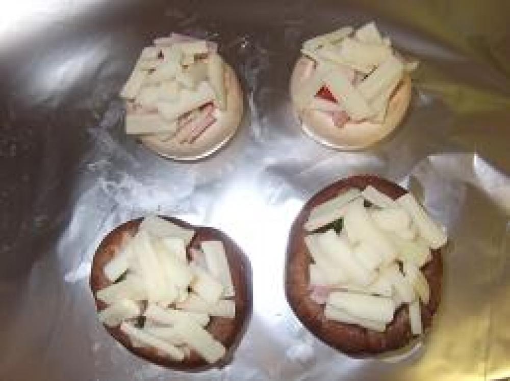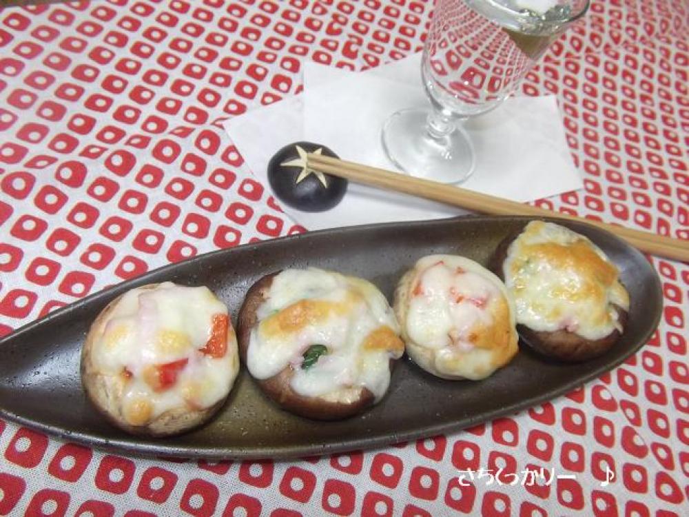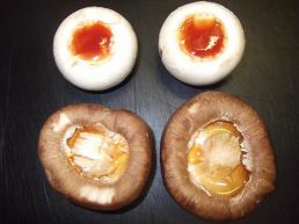 ![]() マッシュルームにケチャップを椎茸にめんつゆを窪んだ部分に入れます。