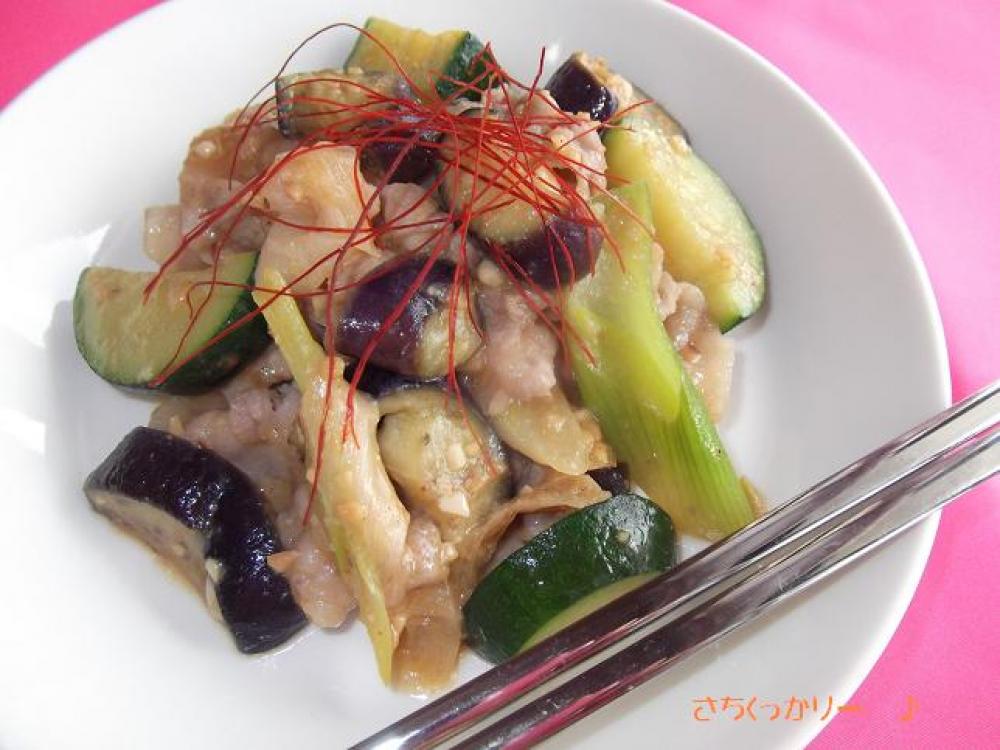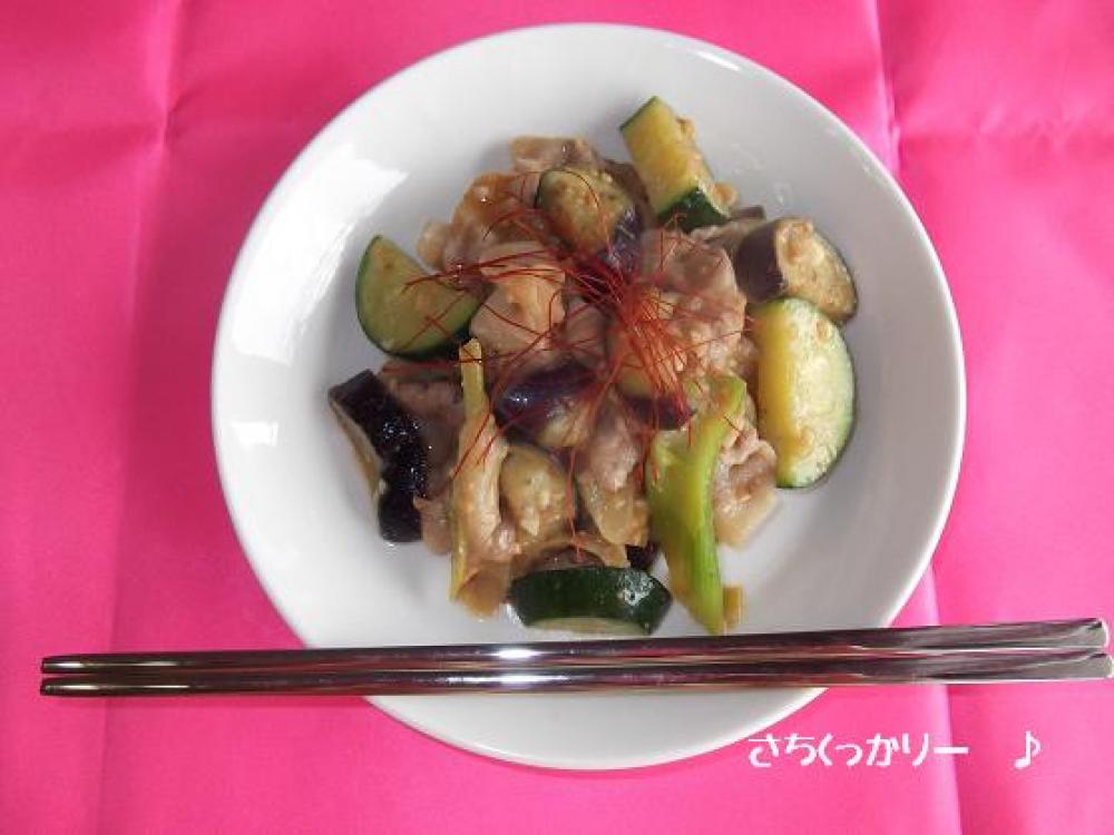 ~下ごしらえ~なす:半月切りにして水にさらしアク抜き、ズッキーニ:半月切り、長ネギ:斜め切り、A:混ぜておく