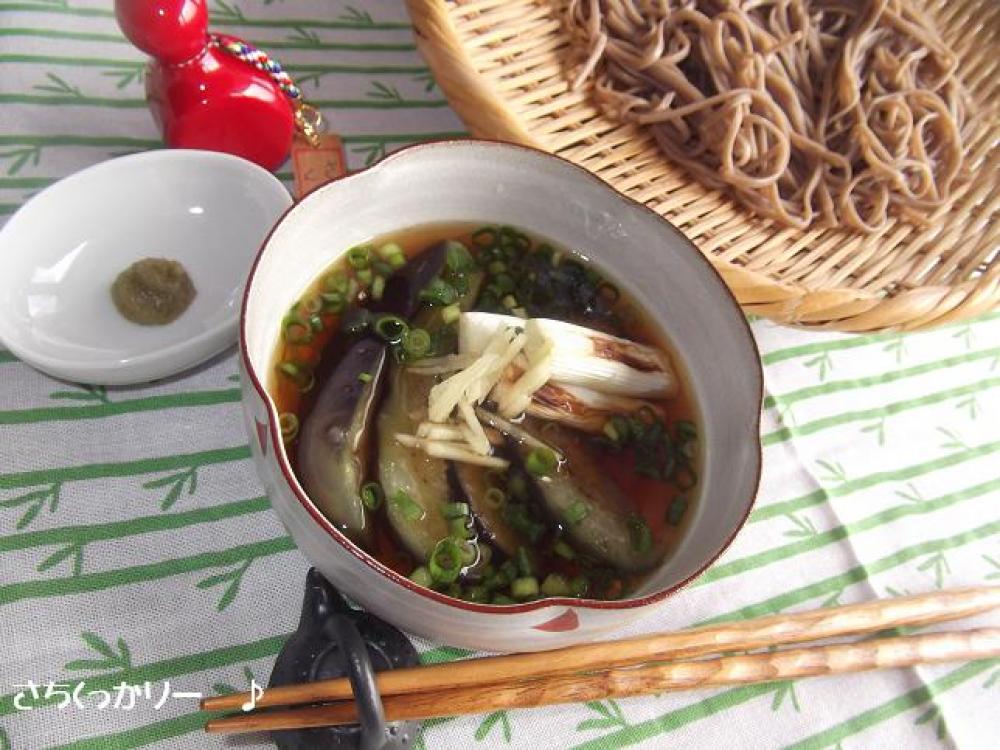 ![]() 椀に茄子&ネギを置き、温めためんつゆを流し入れ、生姜をのせ青ネギを散らします。お好みで柚子コショウや七味を入れて。