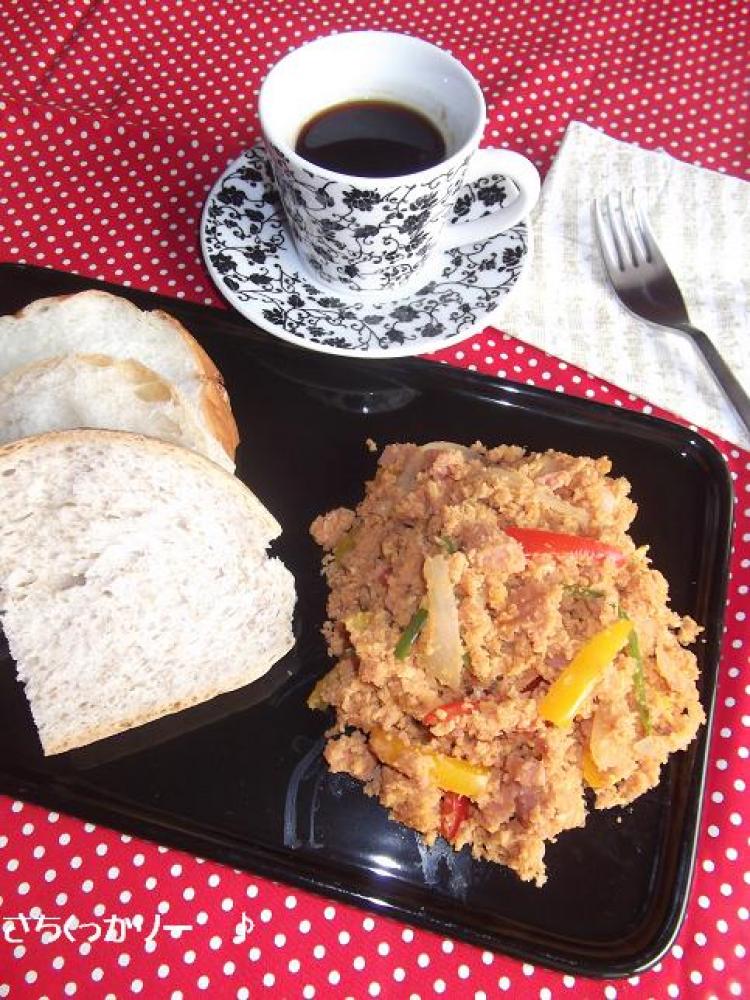 ![]() ~調理~フライパンでおからを空炒りしてパラパラになったら、一旦取り出します。