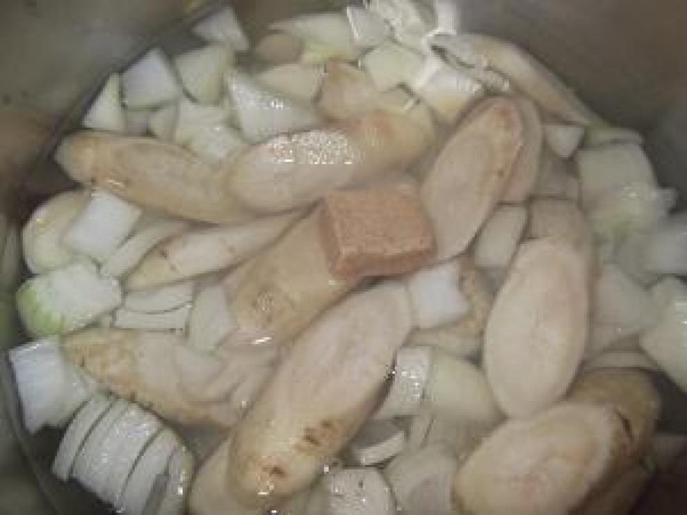 ![]() ~調理~ごぼう&玉ねぎ&Aを鍋に入れて中火で煮ます。