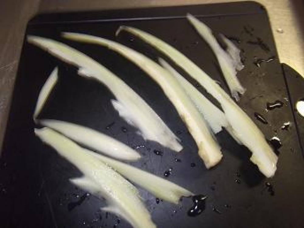 ![]() ~下ごしらえ~キャベツを手で食べやすい大きさにちぎります。芯の部分もスライスして使います。