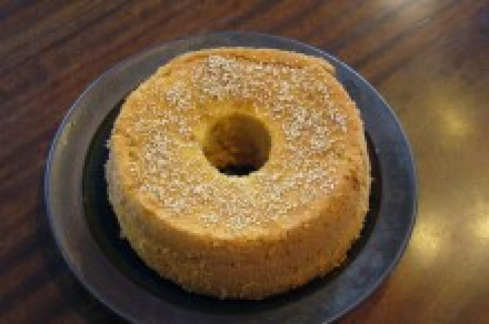 型の回りにバターを軽く塗って、生地を流しこみ、180℃のオーブンで35分焼く。生地が膨らんでくるよ。