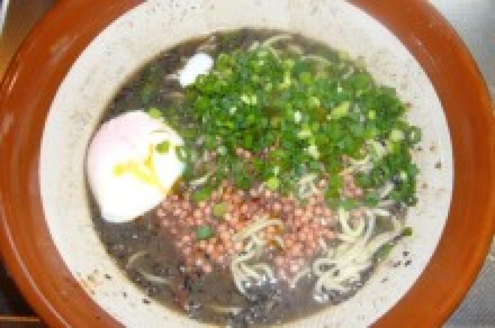 ![]() 麺をスープの中へ入れ、刻んだ青ネギ・温泉卵を入れ最後にラー油をかけて出来上がり!!