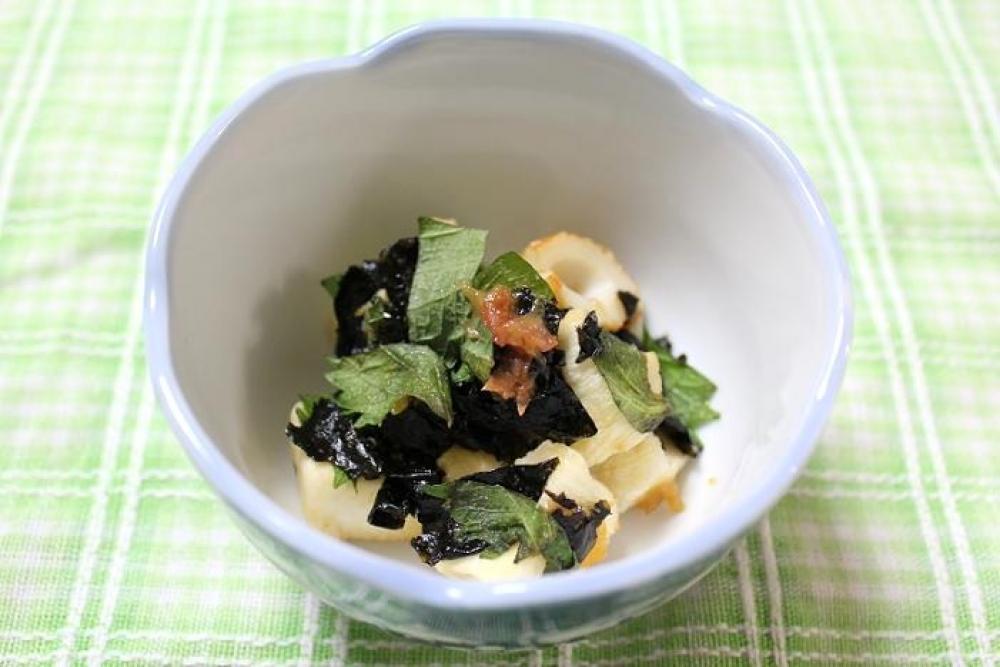 はんぺん・ちくわ・韓国海苔・青しそ・ペースト状にした梅干しを全体が馴染むように和えたら出来上がり。