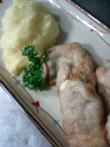 豚肉は、塩コショウして、チーズ1/4枚を中に巻いていきます。食べる時に、小麦粉をまぶして、焼きます。