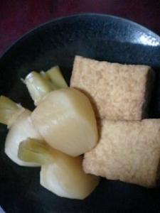 調味液を作り、かぶと生揚げを煮ます。かぶが柔らかくなるまで煮たら、出来上がり。