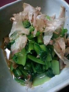 小松菜を固めに茹でます。固くしぼったら、付けしょう油に入れて、30分位つけておいて味を浸み込ませます。