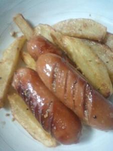 ソーセージには、熱湯をかけ、飾り包丁を入れます。