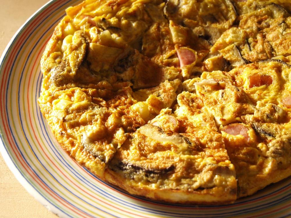 18cmぐらいの小型フライパンを中温に温めオリーブオイルを入れ、卵液を流し込見、最初は箸で、フライパン周りなどをかき混ぜ