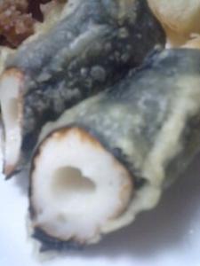 ちくわに海苔を巻いて、天ぷらの衣で揚げるだけ。