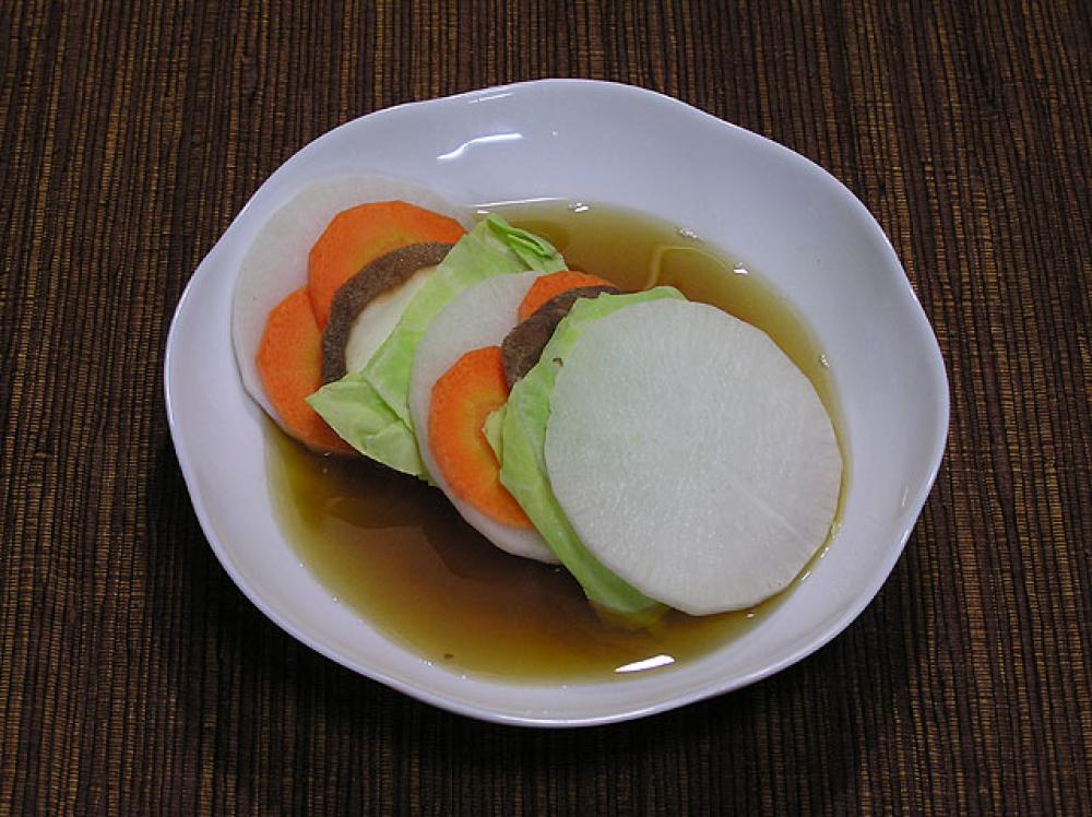 ![]() 大根、人参は輪切り、生椎茸は2等分します。野菜を重ねていき、Bの調味料を入れラップして、電子レンジで7分加熱します。