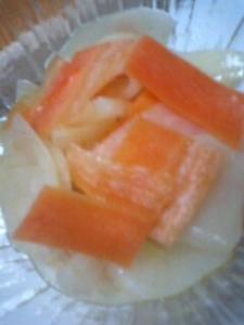 カブは、4等分して、さらに薄くスライスします。ニンジンは、カブと同じぐらいの大きさで短冊切りに。